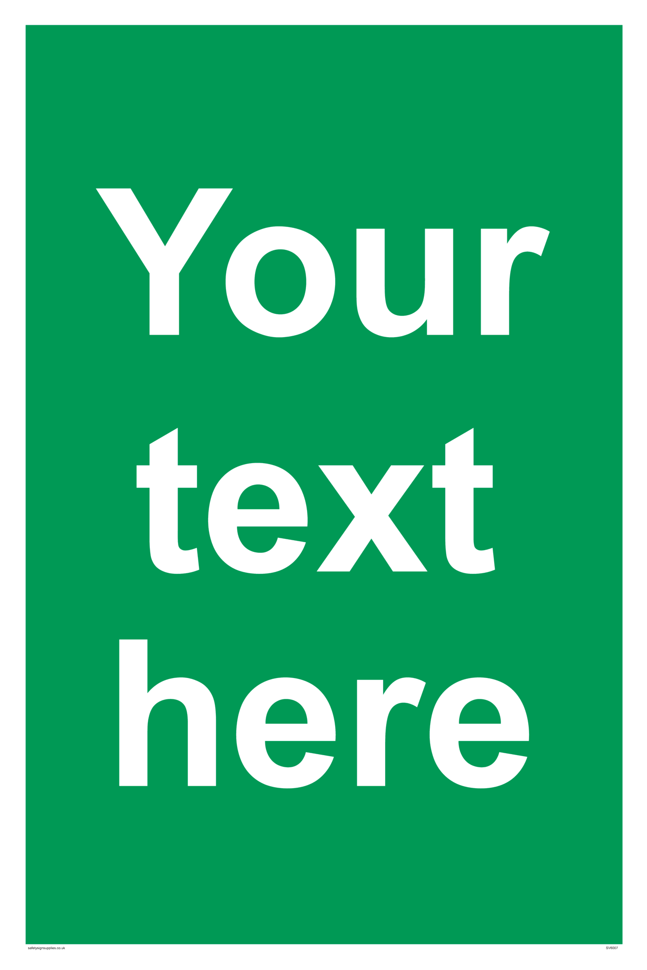 Custom signs contain the text required by the customer. With your your text and a standard safety sign symbol - a bespoke sign can fit any requirement. This sign is approximately equivalent to A2 paper size. This sign is large. Signs in this range are from our maximum choice range. Giving you the most choice of signs available in the UK.