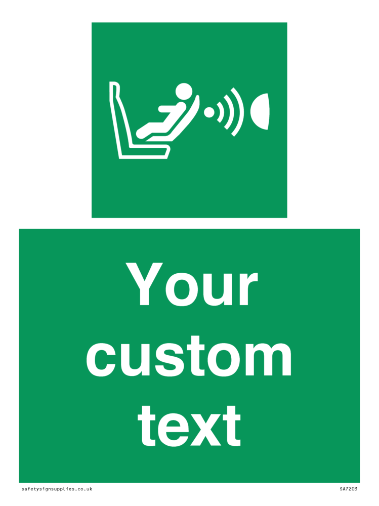 Suitable for mounting on a flat surface. Suitable for mounting on a door. Suitable for mounting on cladding. This product is design to be mounted on the ceiling. Custom signs contain the text required by the customer. With your your text and a standard safety sign symbol - a bespoke sign can fit any requirement.