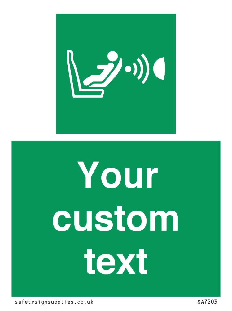 Suitable for mounting on a flat surface. Suitable for mounting on a door. Suitable for mounting on cladding. This product is design to be mounted on the ceiling. Custom signs contain the text required by the customer. With your your text and a standard safety sign symbol - a bespoke sign can fit any requirement.