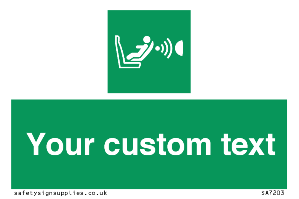 Suitable for mounting on a flat surface. Suitable for mounting on a door. Suitable for mounting on cladding. This product is design to be mounted on the ceiling. Custom signs contain the text required by the customer. With your your text and a standard safety sign symbol - a bespoke sign can fit any requirement.