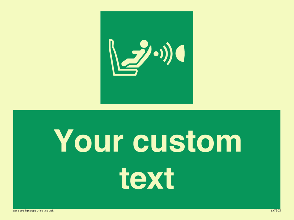 Suitable for mounting on a door. Suitable for mounting on cladding. This product is design to be mounted on the ceiling. Custom signs contain the text required by the customer. With your your text and a standard safety sign symbol - a bespoke sign can fit any requirement.