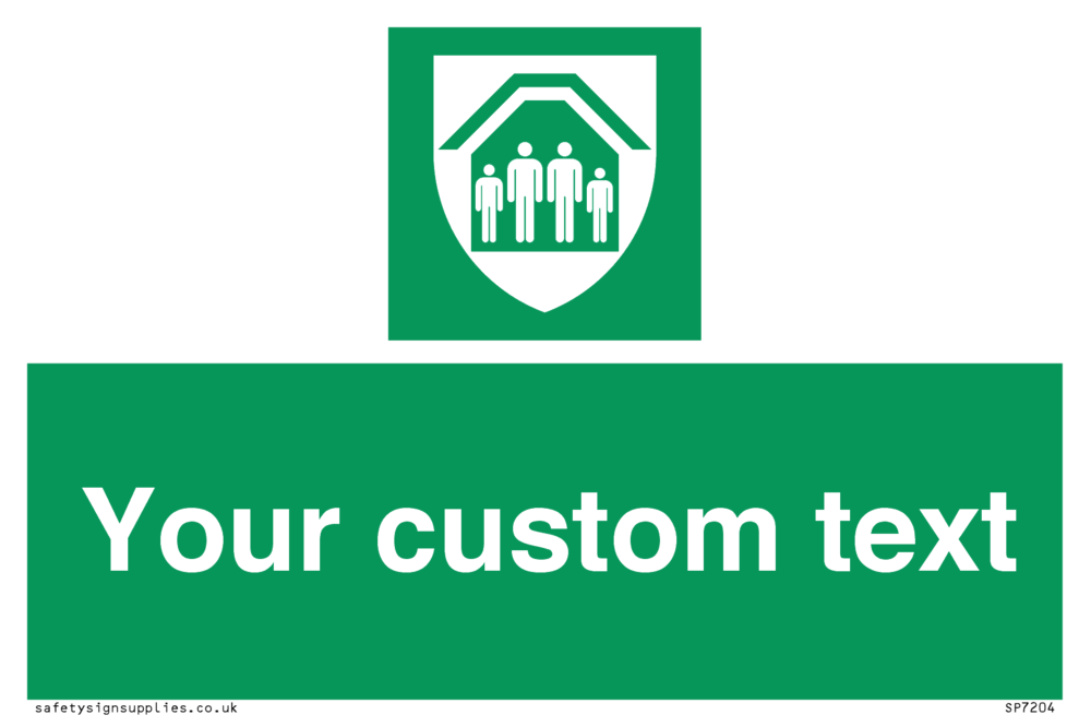 Suitable for mounting on a flat surface. Suitable for mounting on a door. Suitable for mounting on cladding. This product is design to be mounted on the ceiling. Custom signs contain the text required by the customer. With your your text and a standard safety sign symbol - a bespoke sign can fit any requirement.