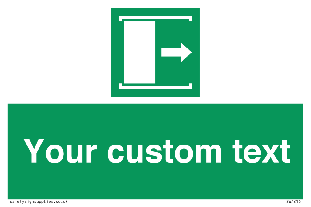 Suitable for mounting on a flat surface. Suitable for mounting on a door. Suitable for mounting on cladding. This product is design to be mounted on the ceiling. Custom signs contain the text required by the customer. With your your text and a standard safety sign symbol - a bespoke sign can fit any requirement.