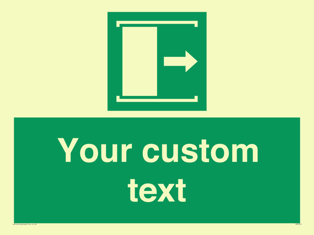 Suitable for mounting on a door. Suitable for mounting on cladding. This product is design to be mounted on the ceiling. Custom signs contain the text required by the customer. With your your text and a standard safety sign symbol - a bespoke sign can fit any requirement.