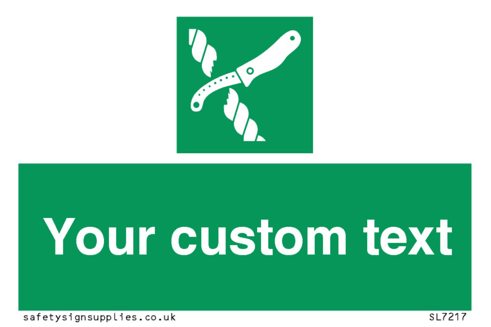 Suitable for mounting on a flat surface. Suitable for mounting on a door. Suitable for mounting on cladding. This product is design to be mounted on the ceiling. Custom signs contain the text required by the customer. With your your text and a standard safety sign symbol - a bespoke sign can fit any requirement.