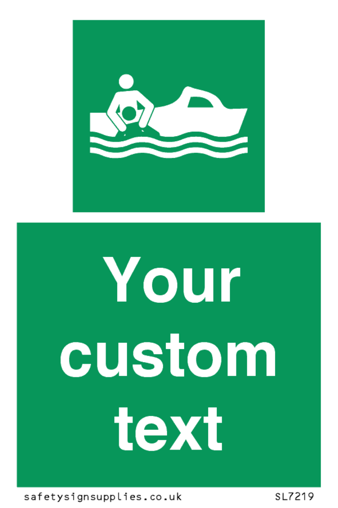 Suitable for mounting on a door. Suitable for mounting on cladding. This product is design to be mounted on the ceiling. Custom signs contain the text required by the customer. With your your text and a standard safety sign symbol - a bespoke sign can fit any requirement. Signs in this range are from our maximum choice range. Giving you the most choice of signs available in the UK.