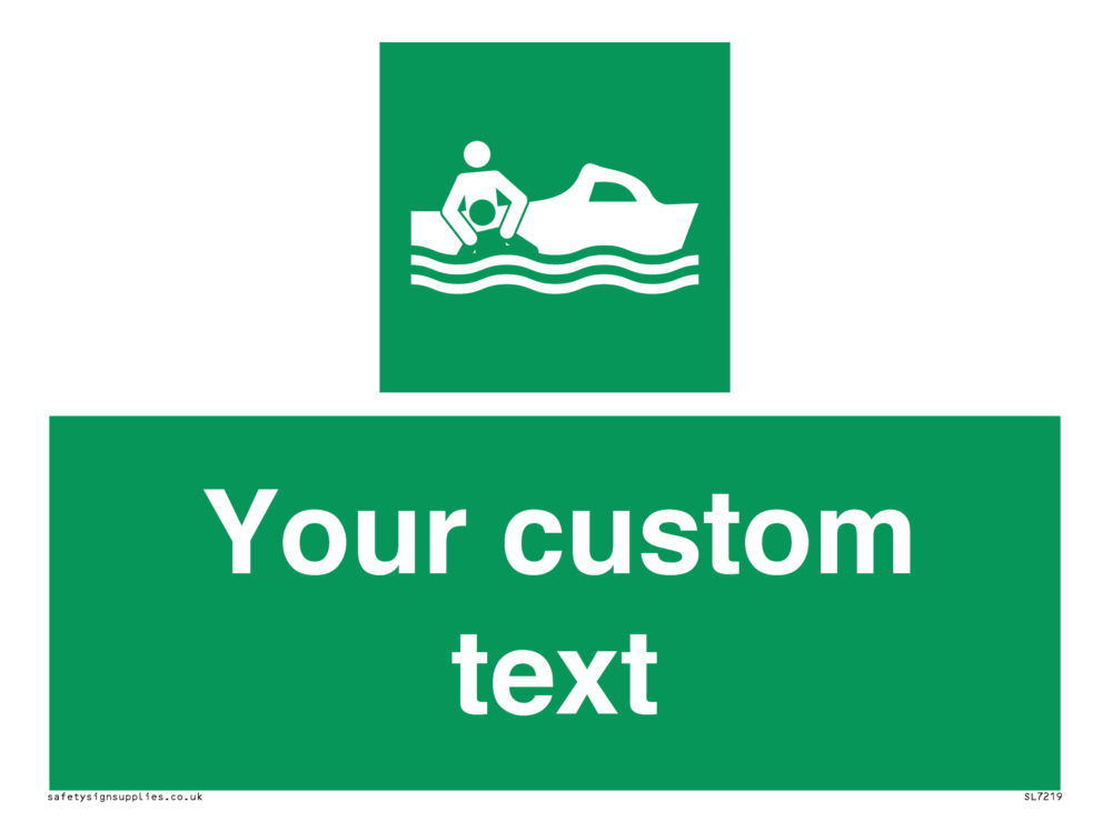 Suitable for mounting on a flat surface. Suitable for mounting on a door. Suitable for mounting on cladding. This product is design to be mounted on the ceiling. Custom signs contain the text required by the customer. With your your text and a standard safety sign symbol - a bespoke sign can fit any requirement.