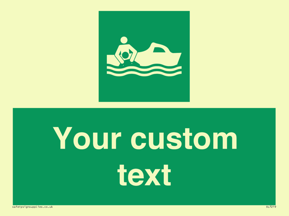 Suitable for mounting on a door. Suitable for mounting on cladding. This product is design to be mounted on the ceiling. Custom signs contain the text required by the customer. With your your text and a standard safety sign symbol - a bespoke sign can fit any requirement.