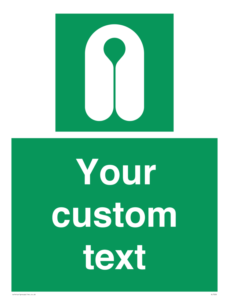 Suitable for mounting on a flat surface. Suitable for mounting on a door. Suitable for mounting on cladding. This product is design to be mounted on the ceiling. Custom signs contain the text required by the customer. With your your text and a standard safety sign symbol - a bespoke sign can fit any requirement.