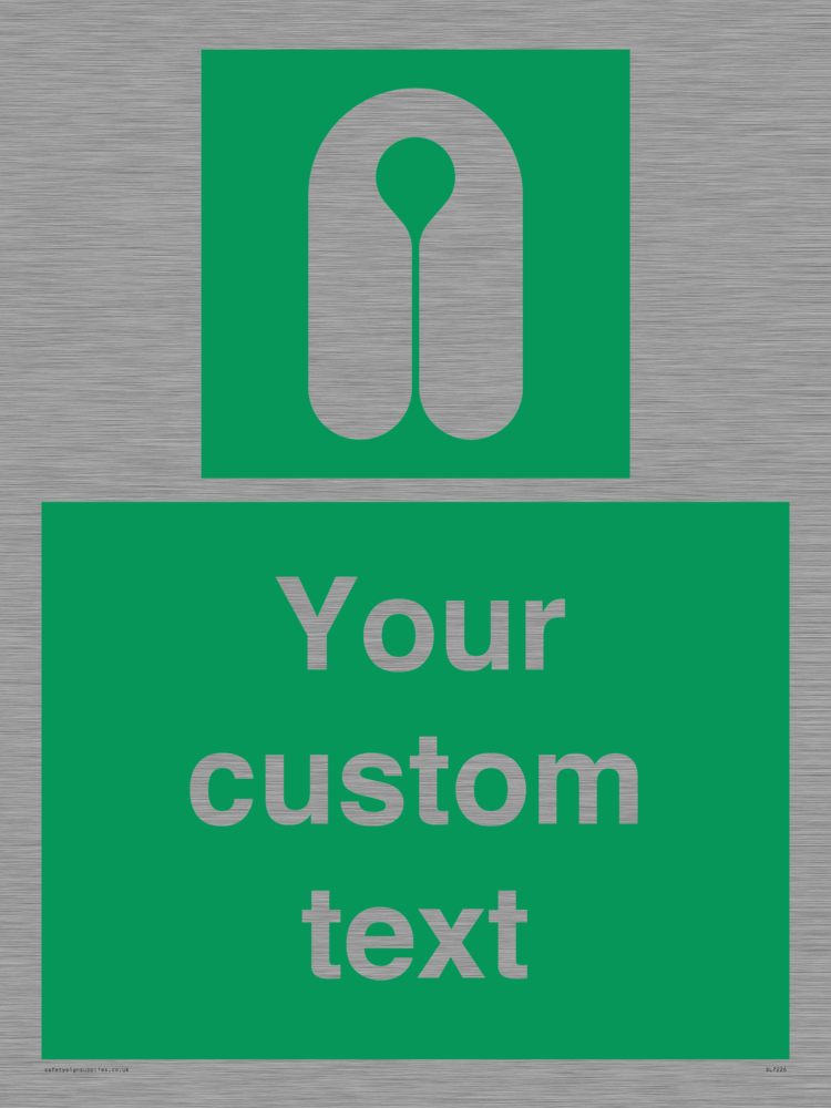 Suitable for mounting on a flat surface. Suitable for mounting on a door. Custom signs contain the text required by the customer. With your your text and a standard safety sign symbol - a bespoke sign can fit any requirement.