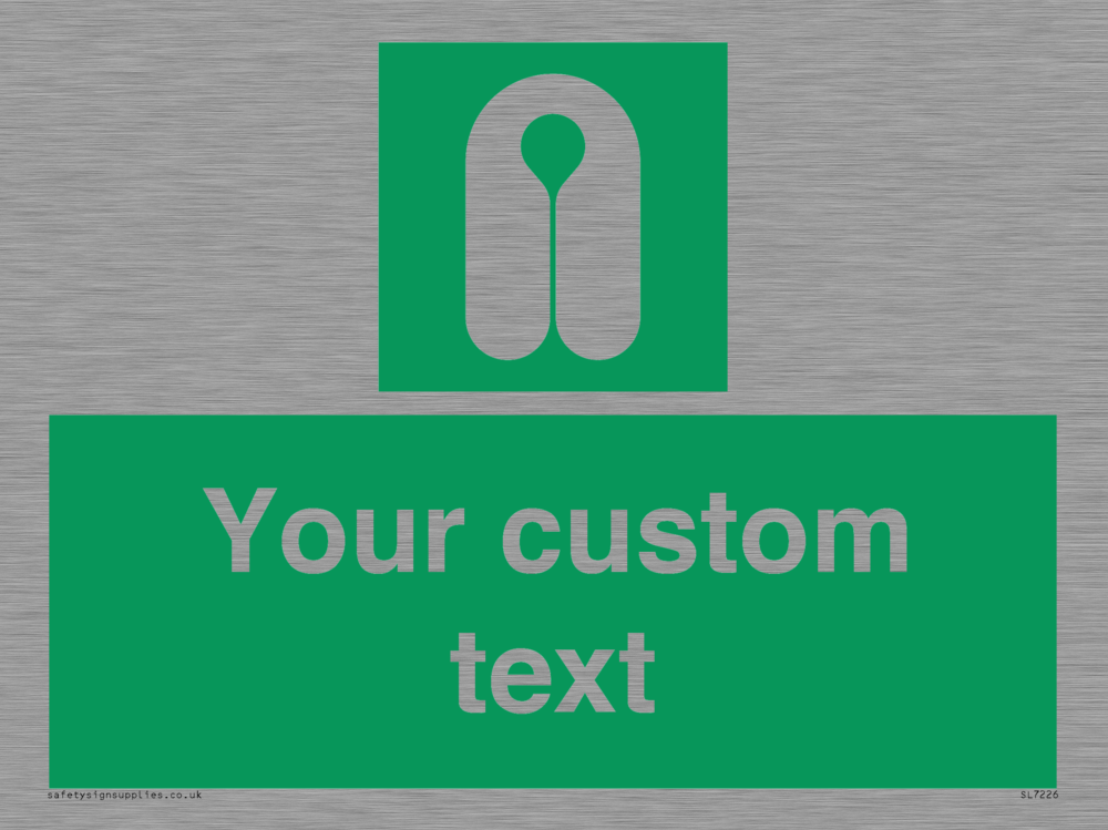 Suitable for mounting on a flat surface. Suitable for mounting on a door. Custom signs contain the text required by the customer. With your your text and a standard safety sign symbol - a bespoke sign can fit any requirement.