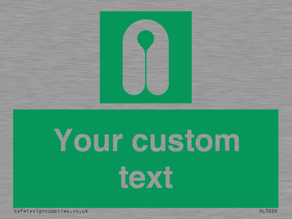 Suitable for mounting on a flat surface. Suitable for mounting on a door. Custom signs contain the text required by the customer. With your your text and a standard safety sign symbol - a bespoke sign can fit any requirement.