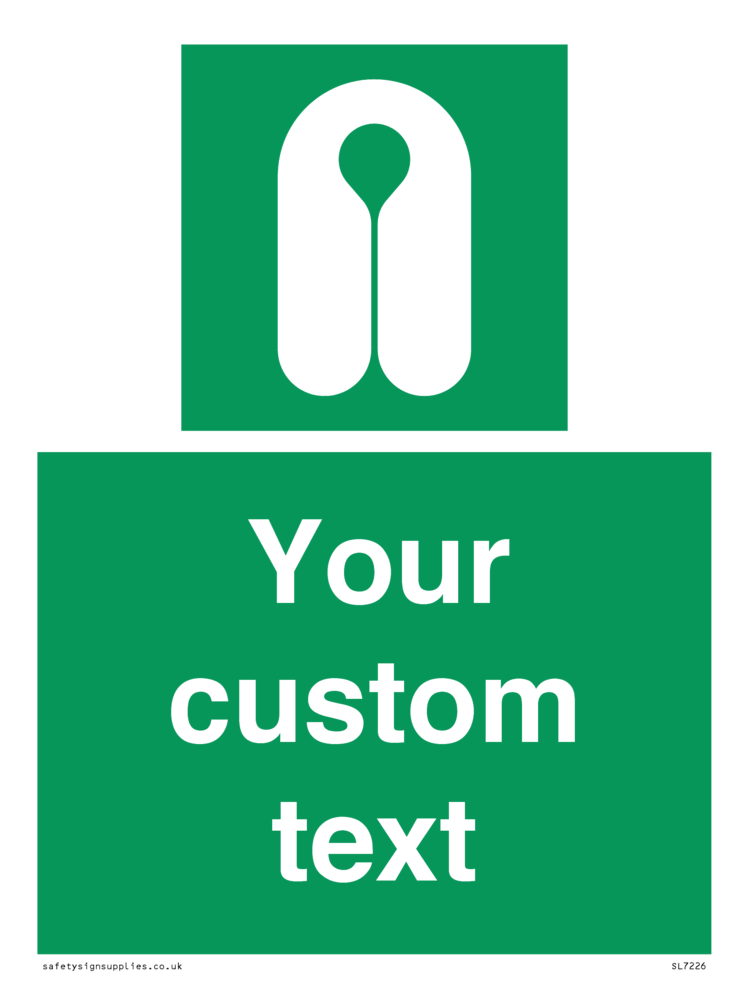 This product is design to be mounted on the ceiling. Custom signs contain the text required by the customer. With your your text and a standard safety sign symbol - a bespoke sign can fit any requirement. Signs in this range are from our maximum choice range. Giving you the most choice of signs available in the UK.