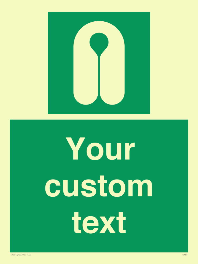 Suitable for mounting on a door. Suitable for mounting on cladding. This product is design to be mounted on the ceiling. Custom signs contain the text required by the customer. With your your text and a standard safety sign symbol - a bespoke sign can fit any requirement.