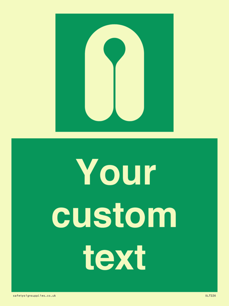 Suitable for mounting on a door. Suitable for mounting on cladding. This product is design to be mounted on the ceiling. Custom signs contain the text required by the customer. With your your text and a standard safety sign symbol - a bespoke sign can fit any requirement.