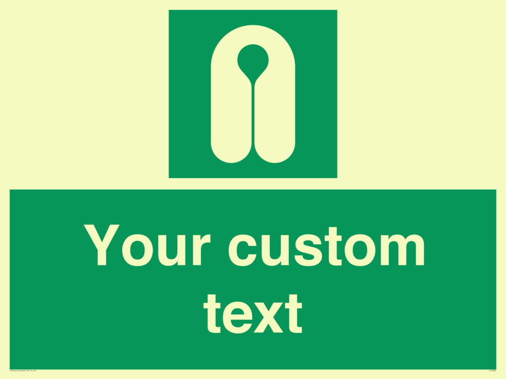 Suitable for mounting on a door. Suitable for mounting on cladding. This product is design to be mounted on the ceiling. Custom signs contain the text required by the customer. With your your text and a standard safety sign symbol - a bespoke sign can fit any requirement.