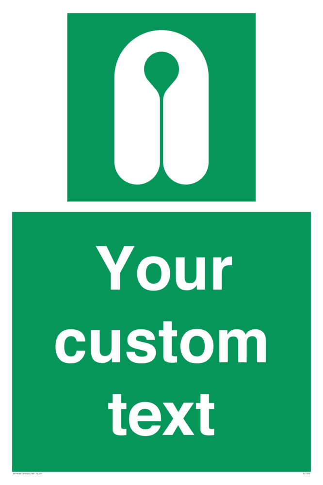 Suitable for mounting on a flat surface. Suitable for mounting on a door. Suitable for mounting on cladding. This product is design to be mounted on the ceiling. Custom signs contain the text required by the customer. With your your text and a standard safety sign symbol - a bespoke sign can fit any requirement.