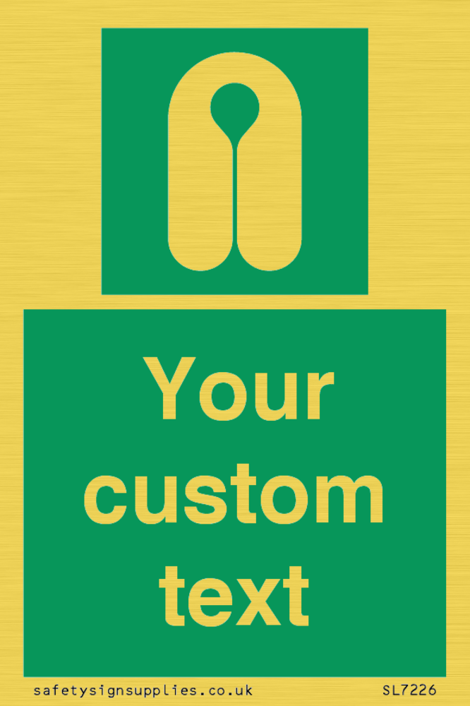 Suitable for mounting on a flat surface. Suitable for mounting on a door. Custom signs contain the text required by the customer. With your your text and a standard safety sign symbol - a bespoke sign can fit any requirement. Signs in this range are from our maximum choice range. Giving you the most choice of signs available in the UK.