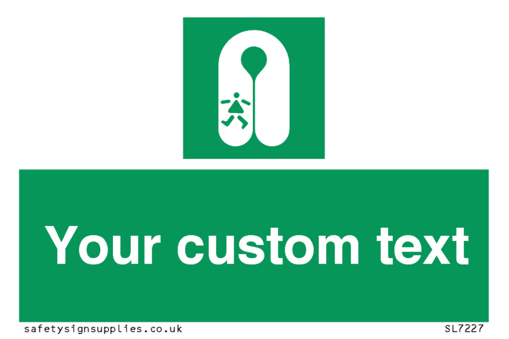 Suitable for mounting on a flat surface. Suitable for mounting on a door. Suitable for mounting on cladding. This product is design to be mounted on the ceiling. Custom signs contain the text required by the customer. With your your text and a standard safety sign symbol - a bespoke sign can fit any requirement.