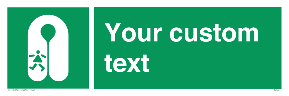 This product is design to be mounted on the ceiling. Custom signs contain the text required by the customer. With your your text and a standard safety sign symbol - a bespoke sign can fit any requirement.