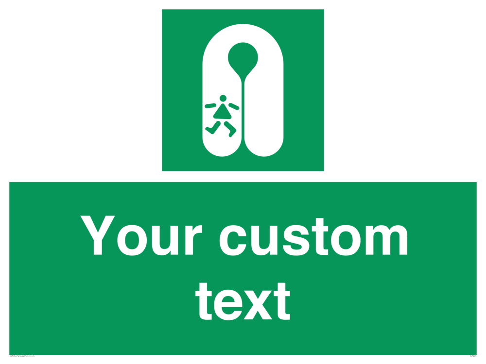 Suitable for mounting on a flat surface. Suitable for mounting on a door. Suitable for mounting on cladding. This product is design to be mounted on the ceiling. Custom signs contain the text required by the customer. With your your text and a standard safety sign symbol - a bespoke sign can fit any requirement.