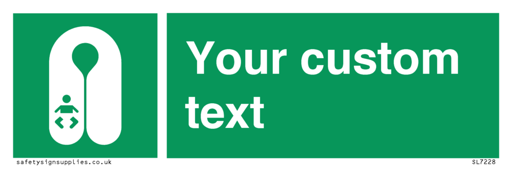 Suitable for mounting on a flat surface. Suitable for mounting on a door. Suitable for mounting on cladding. This product is design to be mounted on the ceiling. Custom signs contain the text required by the customer. With your your text and a standard safety sign symbol - a bespoke sign can fit any requirement.
