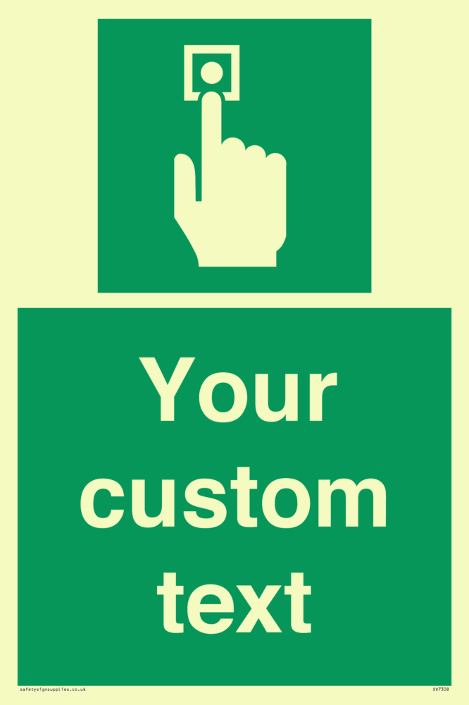 Suitable for mounting on a door. Suitable for mounting on cladding. This product is design to be mounted on the ceiling. Custom signs contain the text required by the customer. With your your text and a standard safety sign symbol - a bespoke sign can fit any requirement.
