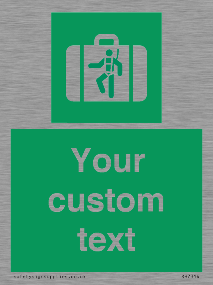 Suitable for mounting on a flat surface. Suitable for mounting on a door. Custom signs contain the text required by the customer. With your your text and a standard safety sign symbol - a bespoke sign can fit any requirement.