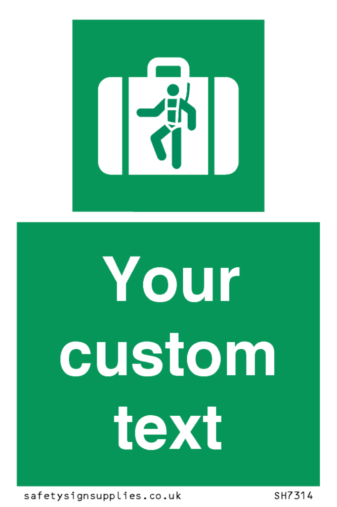 Suitable for mounting on a door. Suitable for mounting on cladding. This product is design to be mounted on the ceiling. Custom signs contain the text required by the customer. With your your text and a standard safety sign symbol - a bespoke sign can fit any requirement.