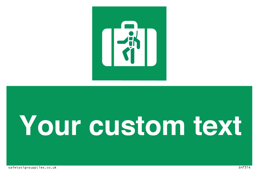 Suitable for mounting on a flat surface. Suitable for mounting on a door. Suitable for mounting on cladding. This product is design to be mounted on the ceiling. Custom signs contain the text required by the customer. With your your text and a standard safety sign symbol - a bespoke sign can fit any requirement.
