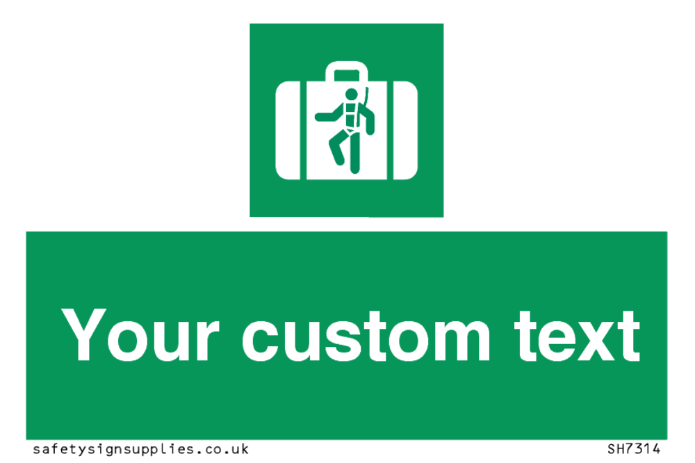 Suitable for mounting on a flat surface. Suitable for mounting on a door. Suitable for mounting on cladding. This product is design to be mounted on the ceiling. Custom signs contain the text required by the customer. With your your text and a standard safety sign symbol - a bespoke sign can fit any requirement.