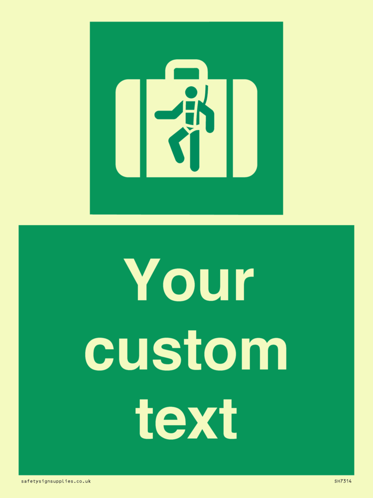 Suitable for mounting on a door. Suitable for mounting on cladding. This product is design to be mounted on the ceiling. Custom signs contain the text required by the customer. With your your text and a standard safety sign symbol - a bespoke sign can fit any requirement.