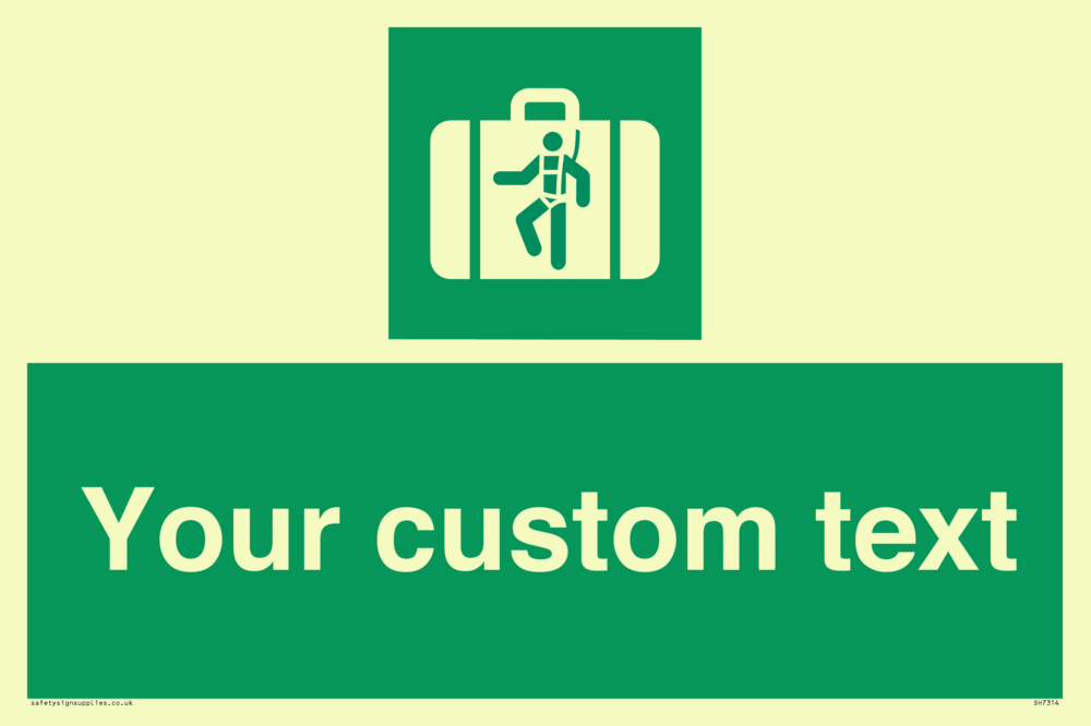 Suitable for mounting on a door. Suitable for mounting on cladding. This product is design to be mounted on the ceiling. Custom signs contain the text required by the customer. With your your text and a standard safety sign symbol - a bespoke sign can fit any requirement.