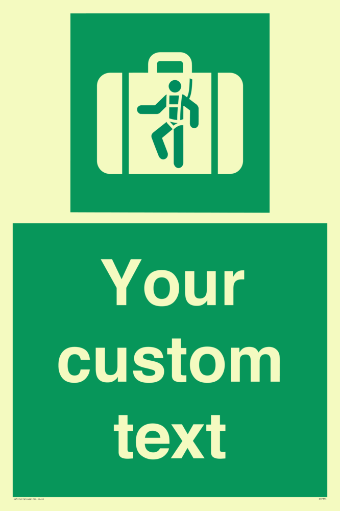 Suitable for mounting on a door. Suitable for mounting on cladding. This product is design to be mounted on the ceiling. Custom signs contain the text required by the customer. With your your text and a standard safety sign symbol - a bespoke sign can fit any requirement.