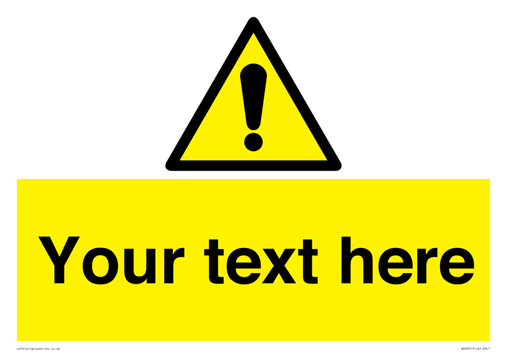 Custom warning safety sign with warning symbol - black exclamation in yellow triangle.