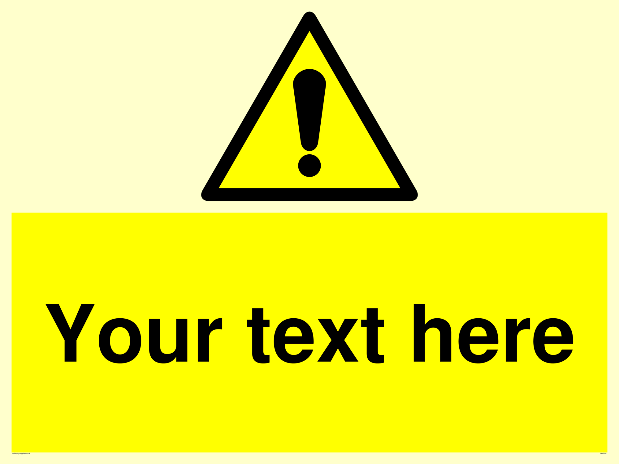 Custom warning safety sign with warning symbol - black exclamation in yellow triangle.
