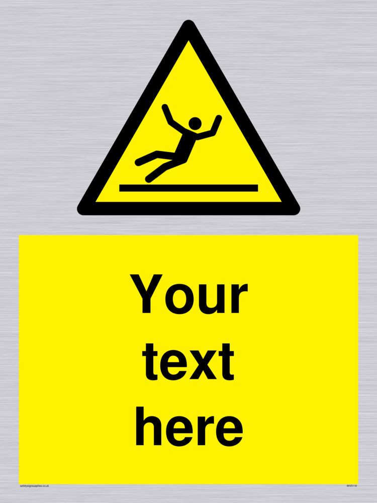 This sign contains a slippery surface warning symbol. Person slipping on wet floor in black in yellow warning triangle with black border. Suitable for fixing with screws. Suitable for hanging with a premium hanging kit.