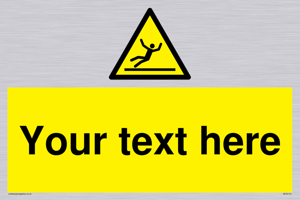 This sign contains a slippery surface warning symbol. Person slipping on wet floor in black in yellow warning triangle with black border. Comes with a self adhesive backing. 200mm or approximately 8" high.