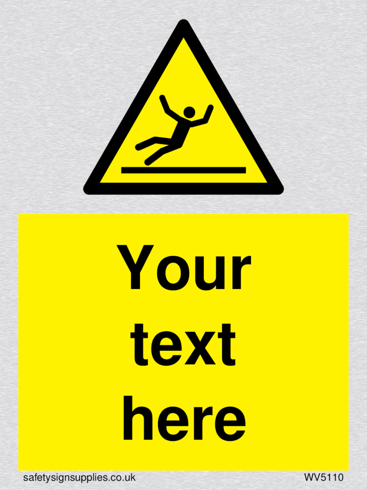 This sign contains a slippery surface warning symbol. Person slipping on wet floor in black in yellow warning triangle with black border. Suitable for fixing with screws. Suitable for hanging with a premium hanging kit.
