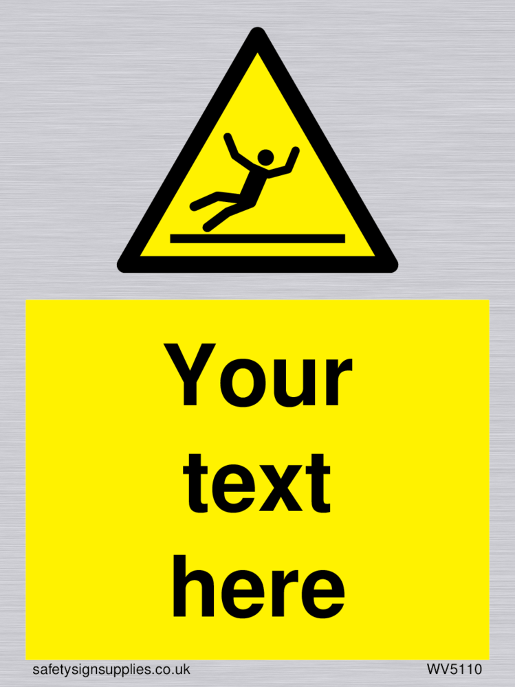 This sign contains a slippery surface warning symbol. Person slipping on wet floor in black in yellow warning triangle with black border. Suitable for fixing with screws. Suitable for hanging with a premium hanging kit.