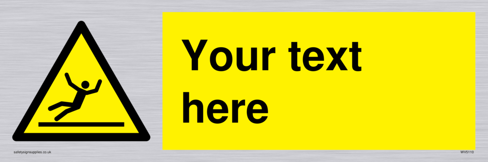This sign contains a slippery surface warning symbol. Person slipping on wet floor in black in yellow warning triangle with black border. Suitable for fixing with screws. Suitable for hanging with a premium hanging kit.