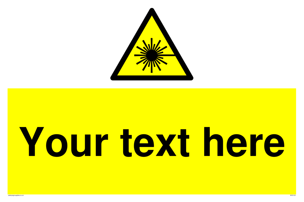 This sign contains an international standard laser warning symbol. Laser beam and star burst in black on yellow warning triangle with black border.