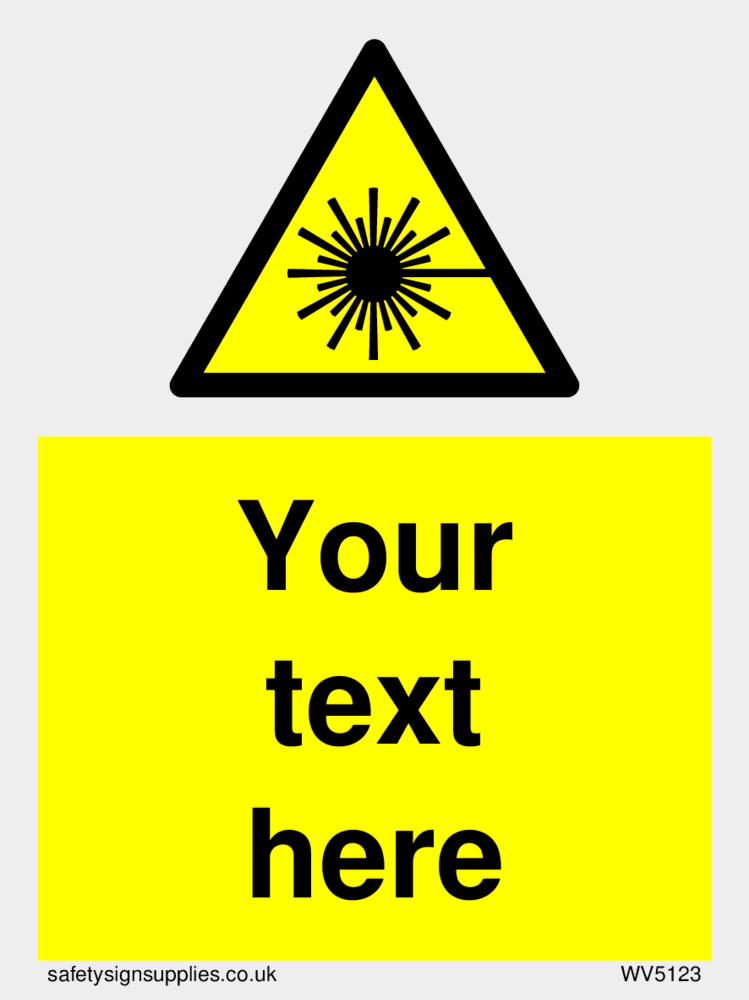 This sign contains an international standard laser warning symbol. Laser beam and star burst in black on yellow warning triangle with black border.