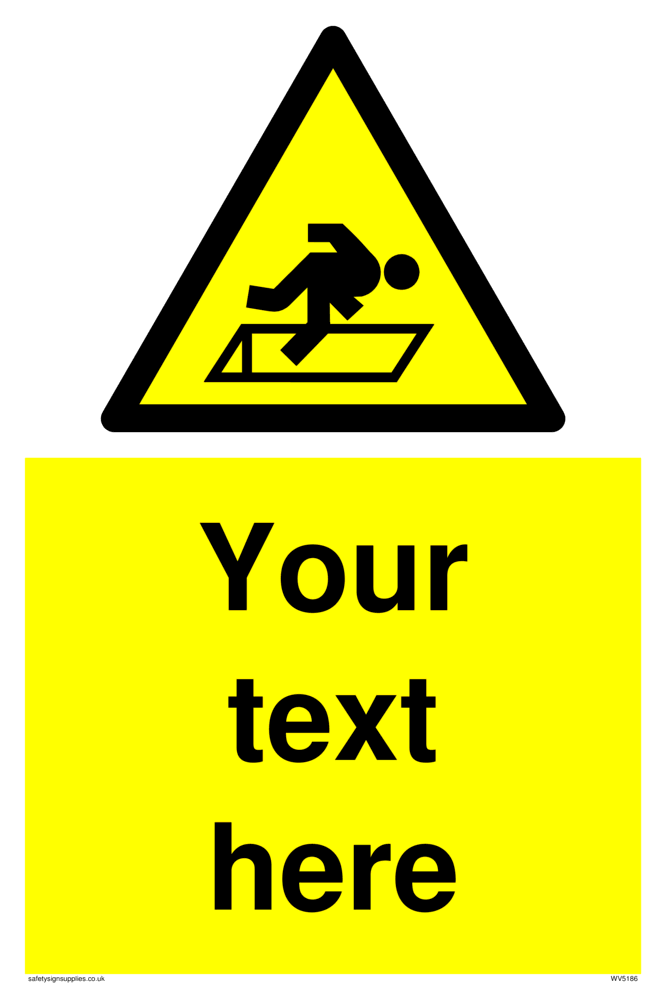 Situational risk signs warn of a risk or danger from the situation, environment, area or place. Custom signs contain the text required by the customer. With your your text and a standard safety sign symbol - a bespoke sign can fit any requirement. This sign is medium sized.