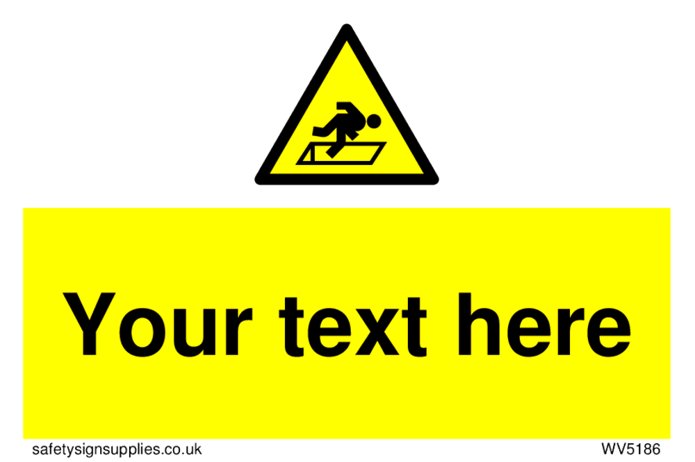Suitable for fixing to a suspended ceiling. Suitable for mounting on a wall Custom signs contain the text required by the customer. With your your text and a standard safety sign symbol - a bespoke sign can fit any requirement.