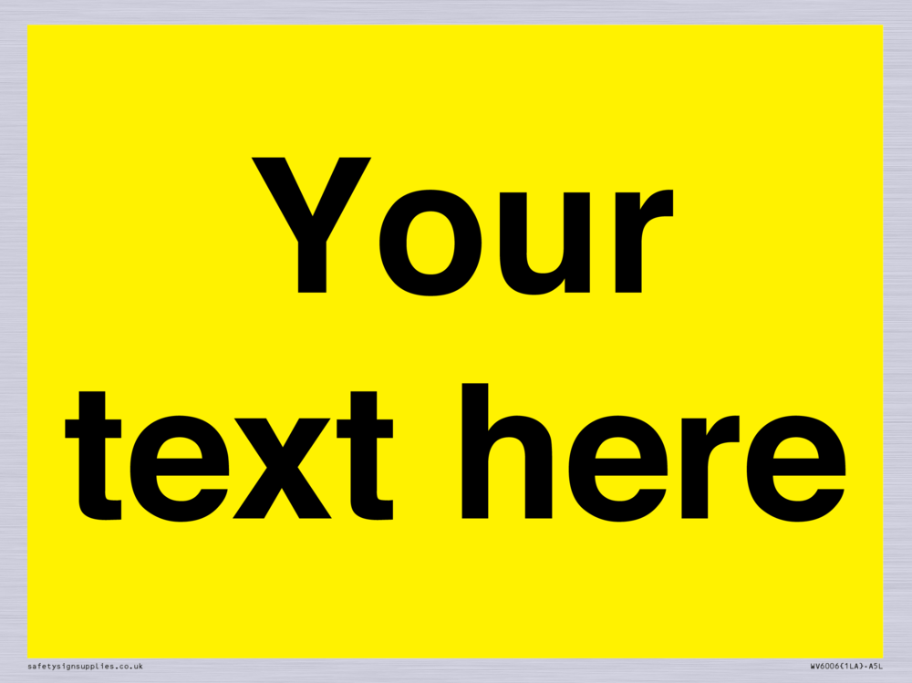 Custom blank warning sign - black text on yellow background