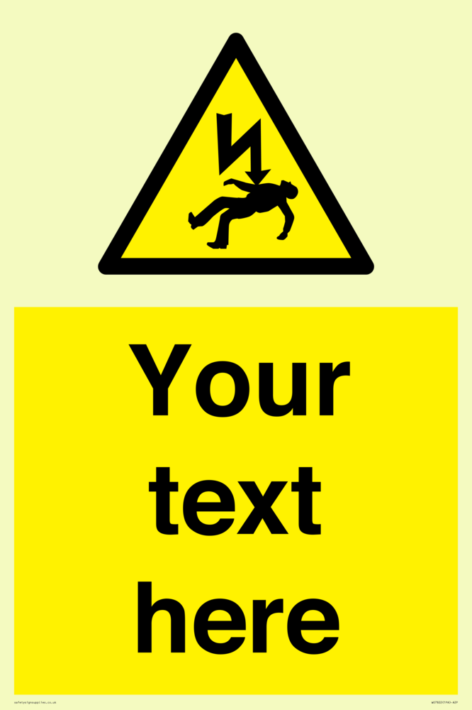 Suitable for mounting on a flat surface. Suitable for mounting on a door. Suitable for mounting on cladding. This product is design to be mounted on the ceiling. Custom signs contain the text required by the customer. With your your text and a standard safety sign symbol - a bespoke sign can fit any requirement.