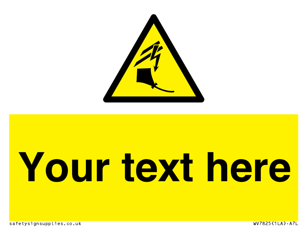 Suitable for mounting on a flat surface. Suitable for mounting on a door. Suitable for mounting on cladding. This product is design to be mounted on the ceiling. Custom signs contain the text required by the customer. With your your text and a standard safety sign symbol - a bespoke sign can fit any requirement.