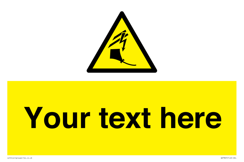 Suitable for mounting on a flat surface. Suitable for mounting on a door. Suitable for mounting on cladding. This product is design to be mounted on the ceiling. Custom signs contain the text required by the customer. With your your text and a standard safety sign symbol - a bespoke sign can fit any requirement.
