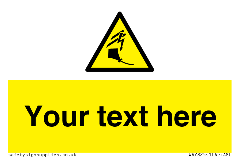 Suitable for mounting on a flat surface. Suitable for mounting on a door. Suitable for mounting on cladding. This product is design to be mounted on the ceiling. Custom signs contain the text required by the customer. With your your text and a standard safety sign symbol - a bespoke sign can fit any requirement.
